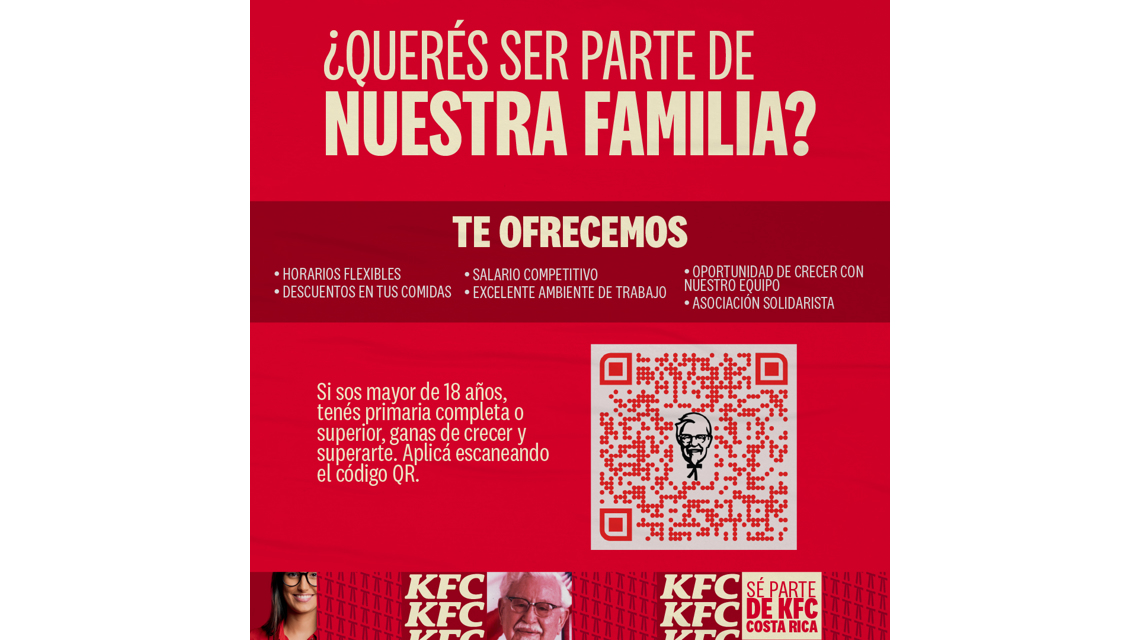 Requerimos colaboradores para formar parte del equipo de trabajo de KFC Costa Rica S.A.